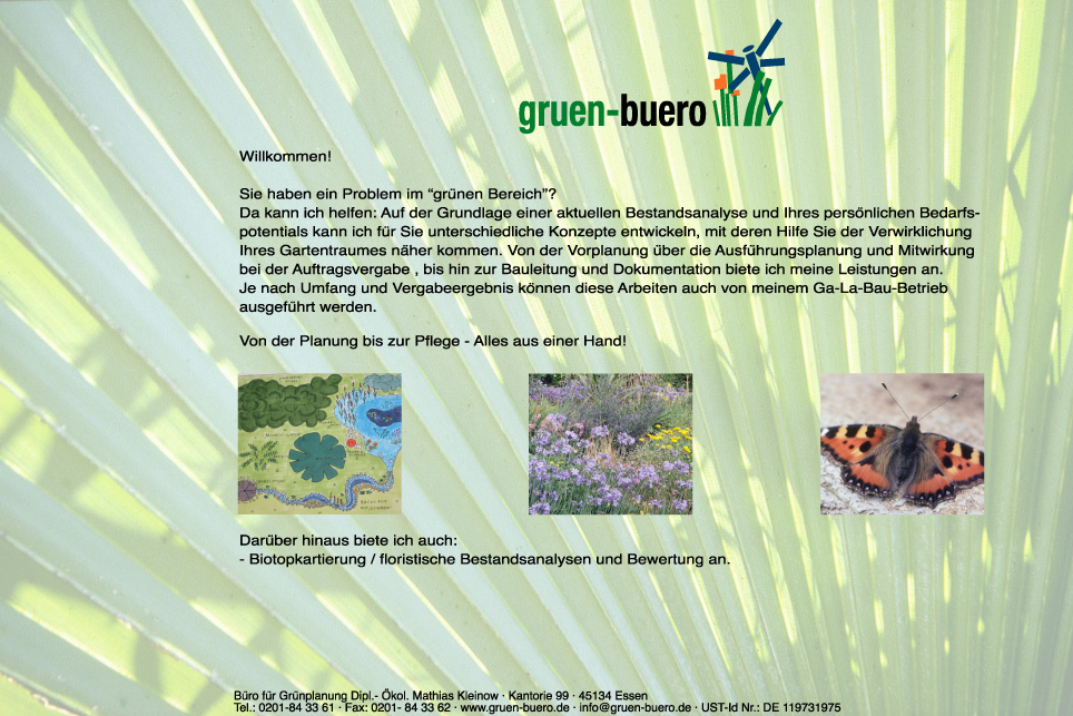 Ich berate Sie gerne in einem persönlichen vor-Ort-Gespräch. Rufen Sie mich an! 0201 - 84 33 61 Dipl.-Ökol. Mathias Kleinow